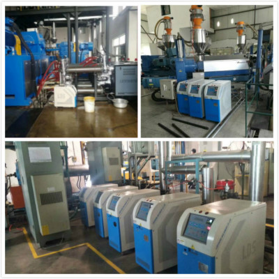 模溫機分為水循環模溫機和油循環模溫機,統稱為模溫機,因為不同的介質溫度不同,水循環模溫機溫度為特殊性98度/普通型120度,高溫型150/180度。水循環模溫機的溫度可分為200標準型油溫機、300度高溫型和350高溫型。模溫機功率選擇是很重要的一個過程,切不可盲目。模溫機功率選擇不恰當會造成很多麻煩,有可能模具溫度無法達到工藝要求,或者升溫慢,影響生產效率。祝松機械的模溫機采用了加熱延時的功能,即開啟模溫機時,機組先自動補充水或導熱油等傳熱媒介,當檢測到傳熱介質補充完成后,再給加熱管一個啟動信號,加熱管開始工作,從而防止加熱管干燒,機組同時配備了壓力控制器,若壓力過低時,則說明傳熱介質流量不足,也有可能產生干燒,這時機組開始報警,通過兩個方面的技術改進,從根源上解決了發熱管干燒現象的產生。